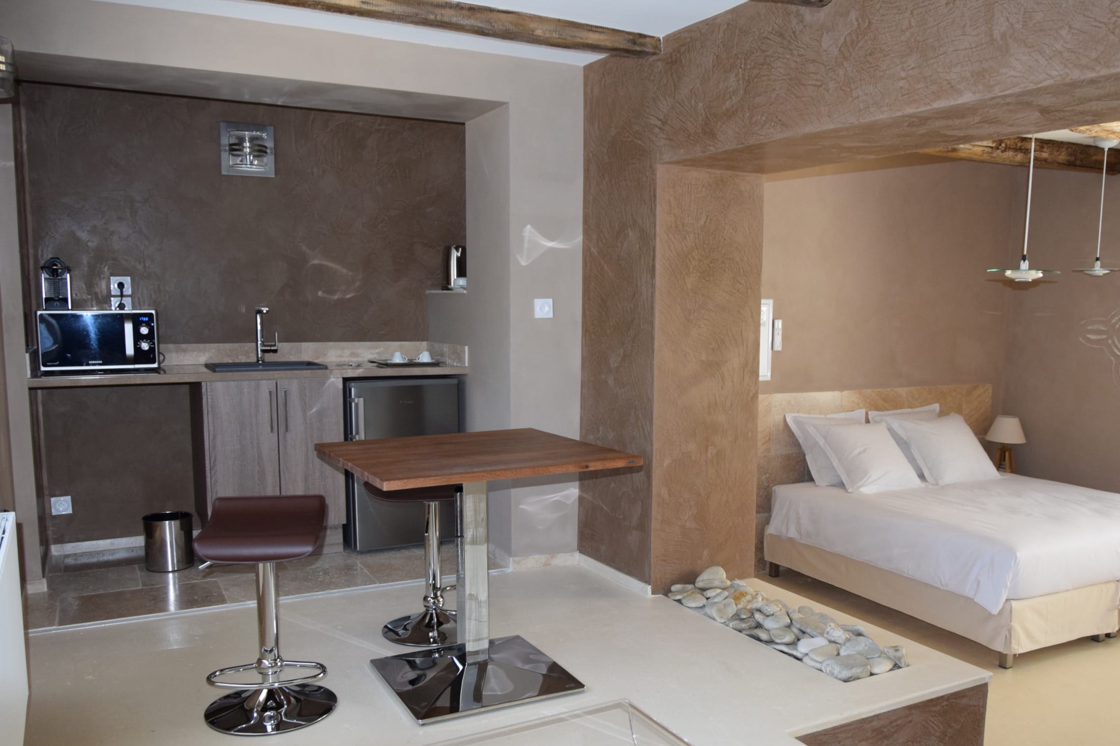 Vous apprécierez les différents équipements à votre disposition : cafetière Nespresso, bouilloire, réfrigérateur, grand coffre-fort et télévision écran plat.