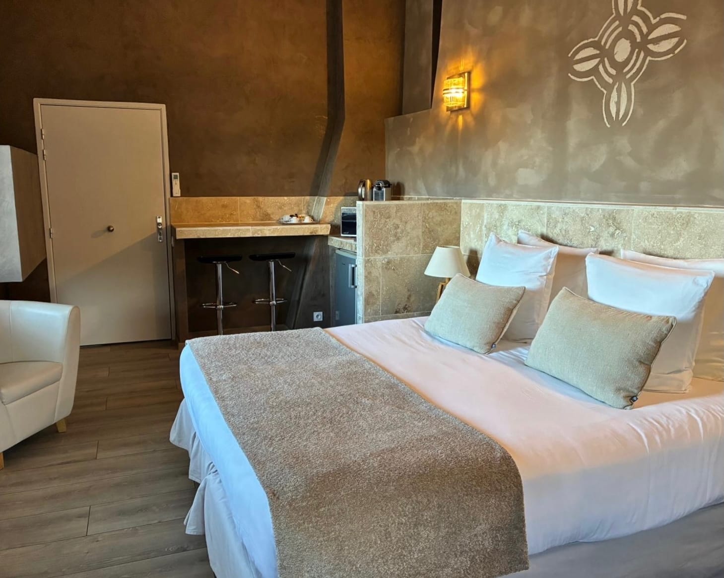 - Équipements : Cafetière Nespresso et bouilloire, Climatisation, Coffre-fort, Peignoirs et serviettes, Petit-déjeuner inclus, Réfrigérateur et micro-ondes, Salle de bain privée, Télévision écran plat, WiFi