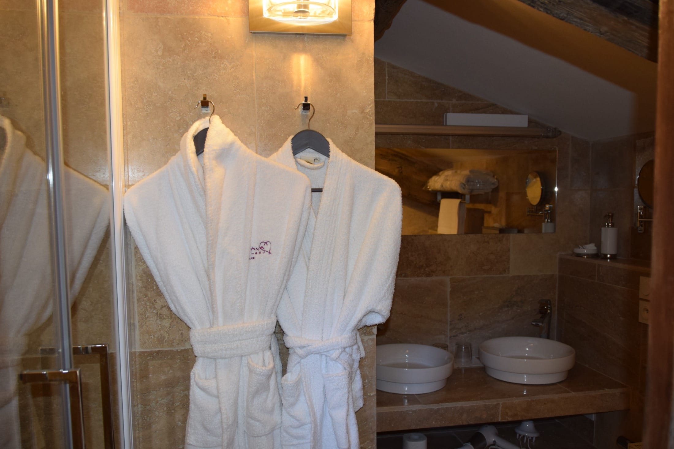 Votre chambre est composée d’une salle d’eau avec douche, toilettes, peignoirs, serviettes et sèche-cheveux, mais aussi d’un lit King Size.
