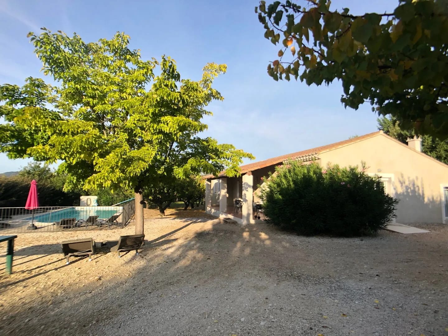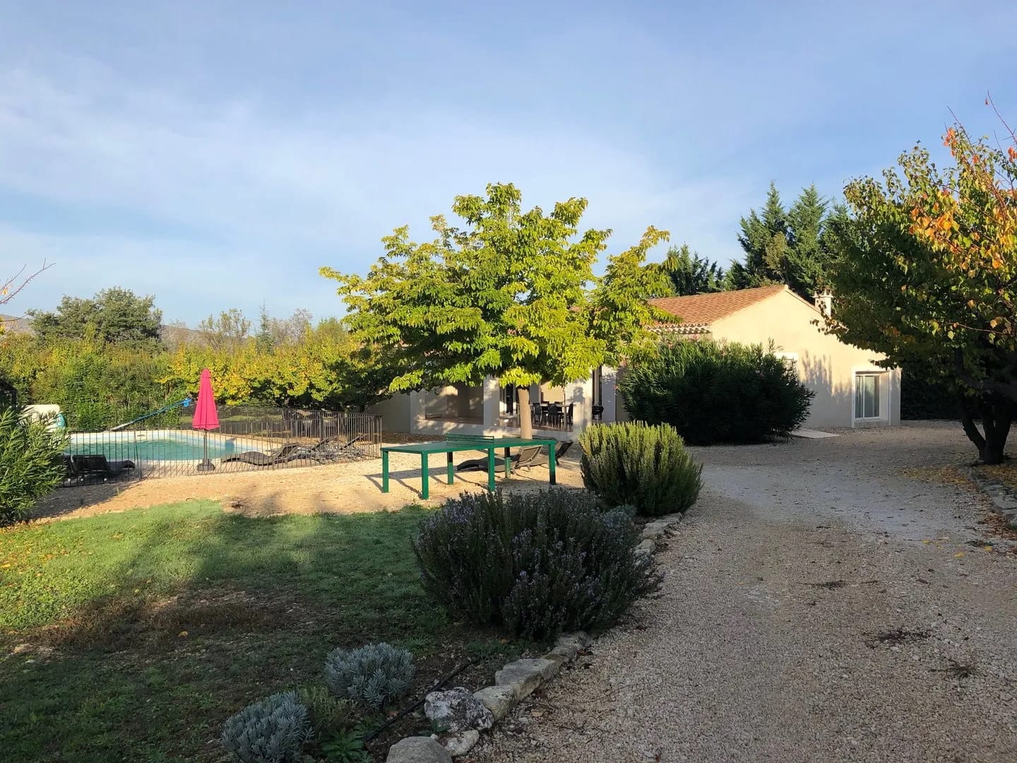 La villa propose un grand parc clôturé avec terrasse, barbecue, piscine, jeux pour enfants, boulodrome et table de ping-pong.