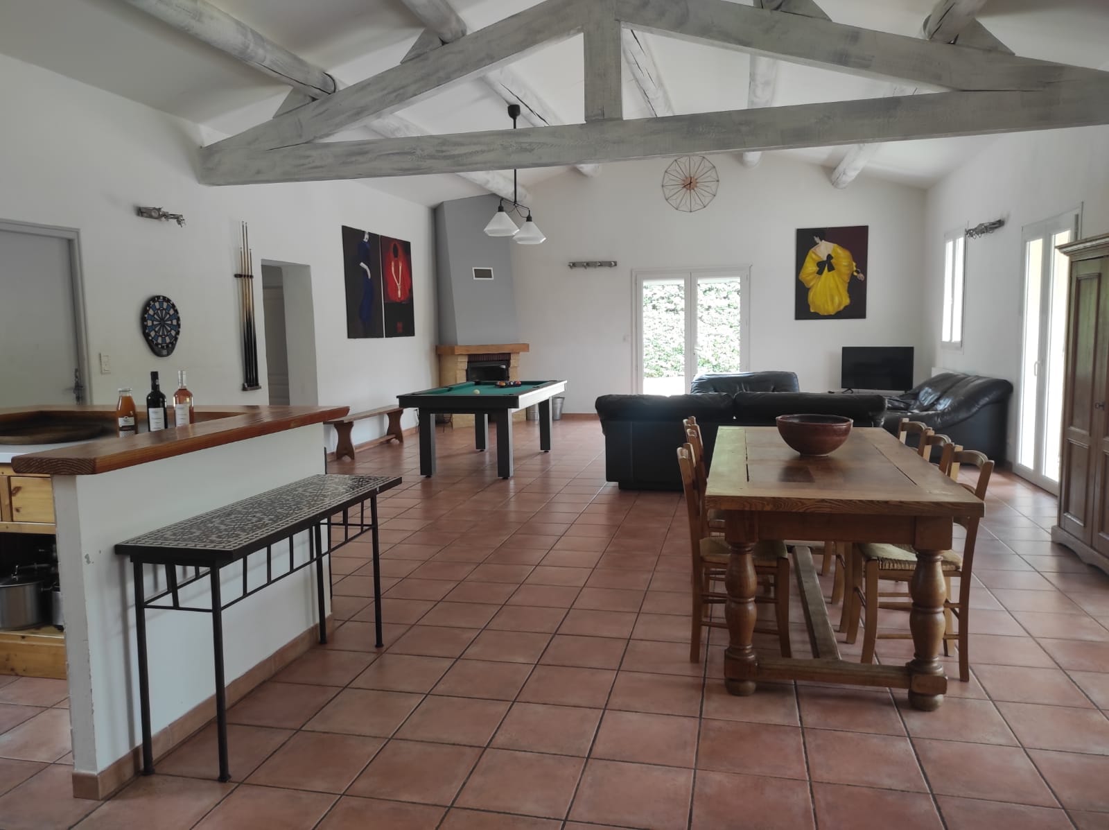 Vous apprécierez de vous détendre dans le grand séjour avec télévision, radio, coffre-fort et billard américain. La cuisine est pourvue de tout le nécessaire : lave-vaisselle, lave-linge, 2 réfrigérateurs, four, four micro-ondes, bouilloire, cafetière filtre, cafetière Nespresso, plaques de cuisson, vaisselle et ustensiles.
